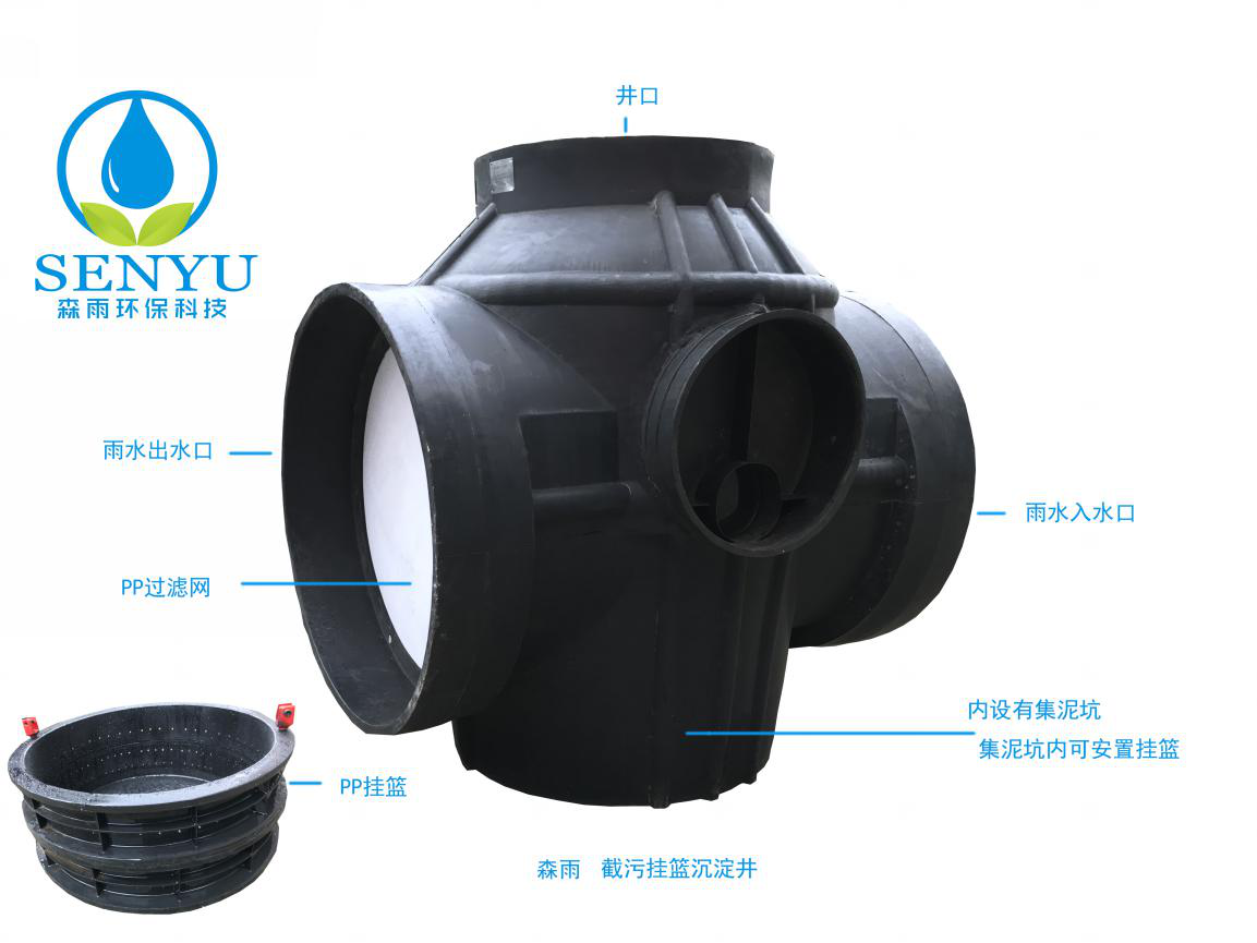 森雨 截污沉淀掛籃裝置外殼材質(zhì)為PE聚乙烯塑料一體成型,內(nèi)置透水孔PP提籃,井室內(nèi)底有一集污坑 掛籃置放于坑內(nèi)。內(nèi)側(cè)單面接管口方向設有PP塑料材質(zhì)網(wǎng)孔板,孔板孔徑也從1mm毫米到5mm毫米之間,可根據(jù)雨水收集要處理的水質(zhì)不同情況而替換。